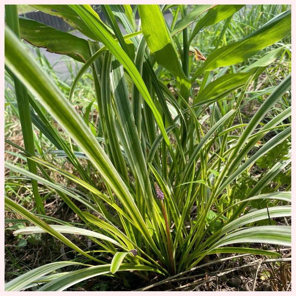 ①〜斑入りのヤブラン〜ラン♬やっとお花が咲いてきました〜うれちー😆♬後ろのミョウガも順調♪順調♪