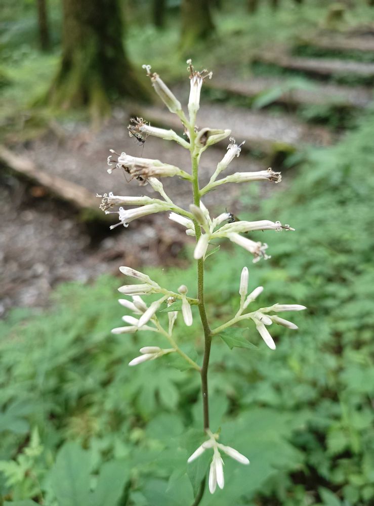 コウモリソウ属らしいお花、蕊の先がクルリン、可愛いです。