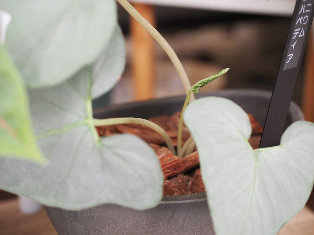 裏面だからこんな色なのか、葉の成長とともにシルバーになっていくのか、このあとの展開が楽しみ😆