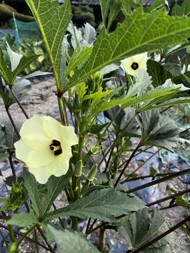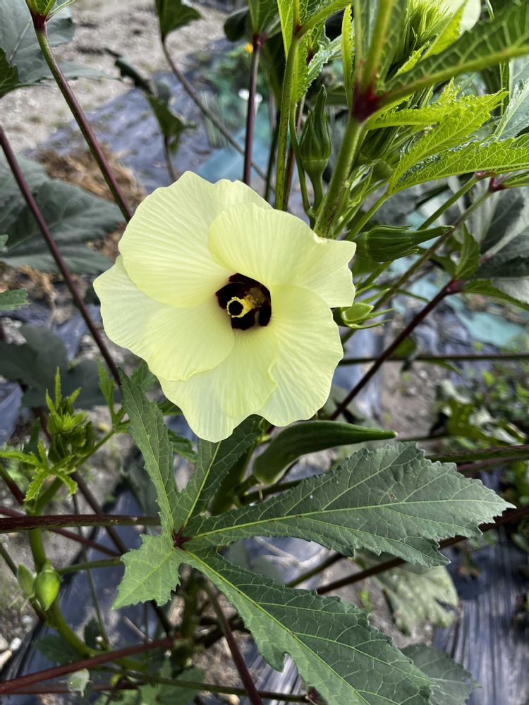 オクラの花って綺麗ですよね。ハイビスカスみたい…ん?💡
