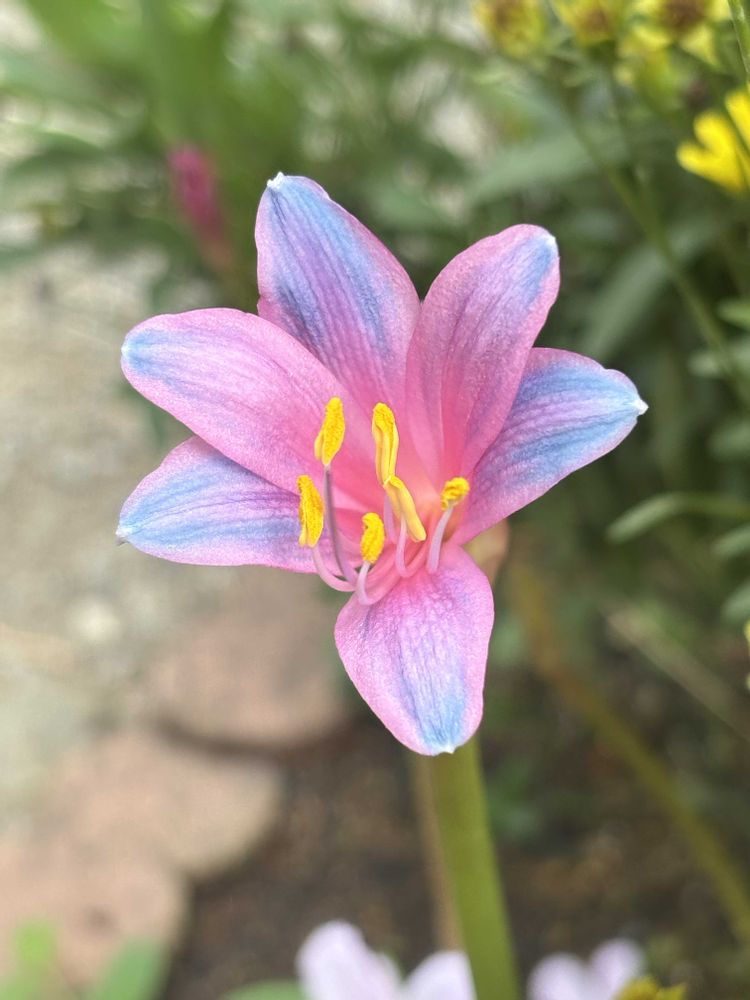 ナツズイセンは、ピンクにほんの少し青みが入るようですが、ムラサキキツネノカミソリ(リコリススプリンゲリー)の方が、ピンクに青みが強く入って、ハッキリ色合いが違います。