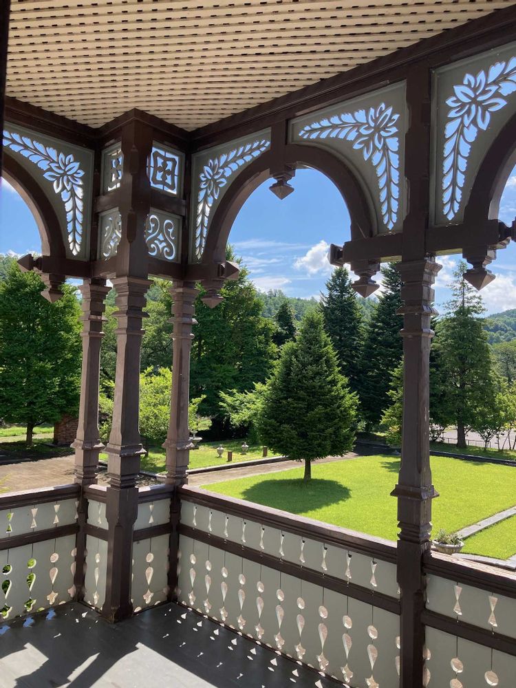 優雅な螺旋階段と所長室、ベランダからの眺めとフジの透かしレリーフも見事でした