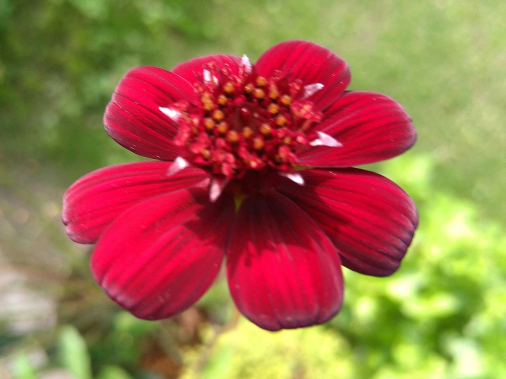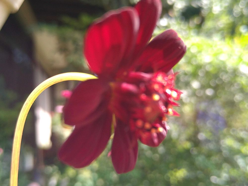 昨年のチョコレートコスモス挿し穂のこが瀕死状態になりながらも冬越しして、やっと咲きました🤎深紅の魅力的な花色✨
