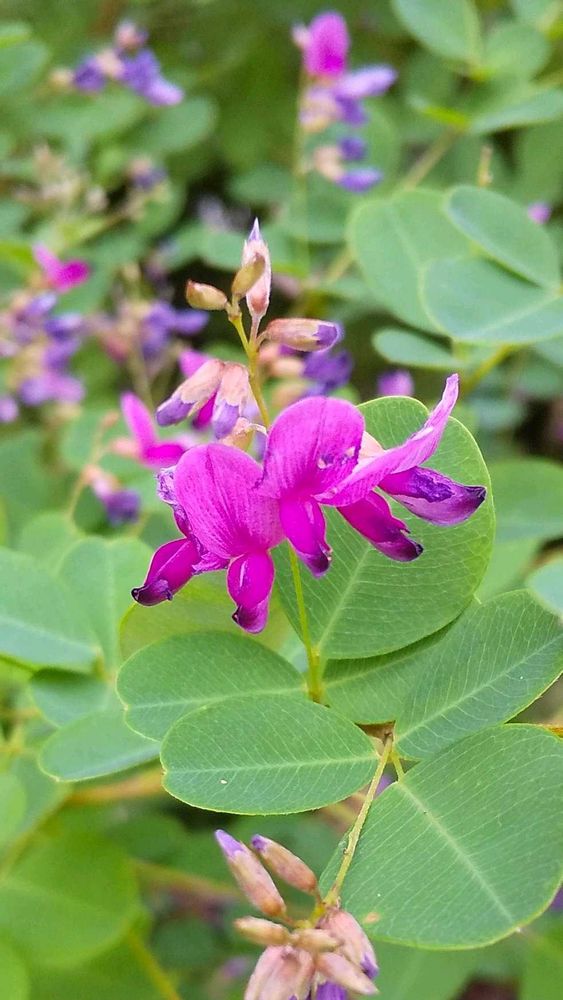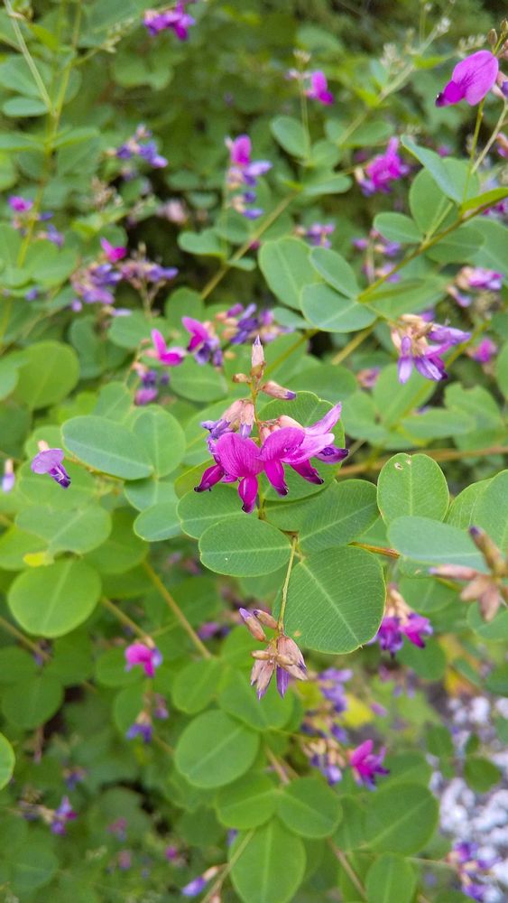 ヤマハギかと思います マメ科の植物らしく 蝶形の小さな紅紫色の花を咲かせています 秋の七草の一つで 万葉集にも数多く詠まれているそうです 立秋をとうに過ぎたとはいえ 北海道でもまだ夏の肌感覚です 良く似た花にマルバハギという花があるようですが 調べてみてもどこがどのように違うのか分かりません 拘りはないのですが 世の中にはよくもこれ程似た花があるものかと 少々夏ばて気味の今日この頃です