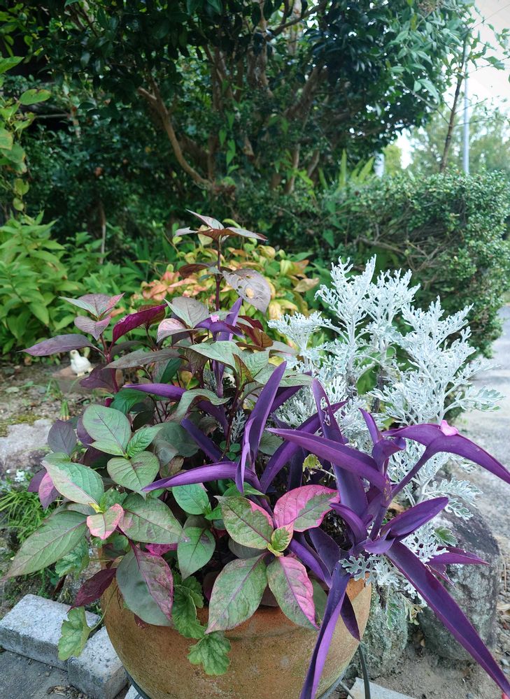 紫御殿とこぼれ種のアルテルナンテラがモリモリ元気そうです♬