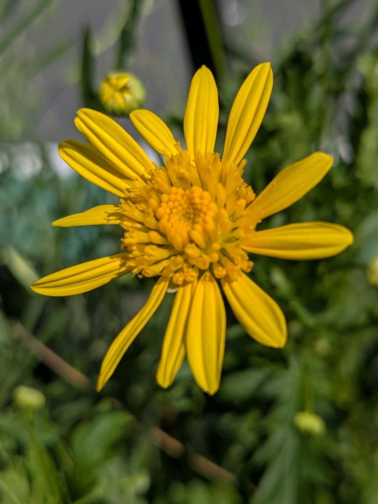 花のあまりない庭に蝶🦋のようにゆらゆらと黄色い花、可愛いですよ😀