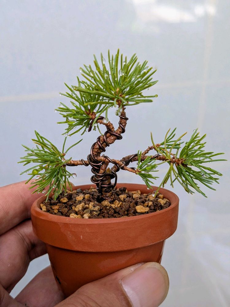 五葉松に、針金掛けて無理やり模様木😅