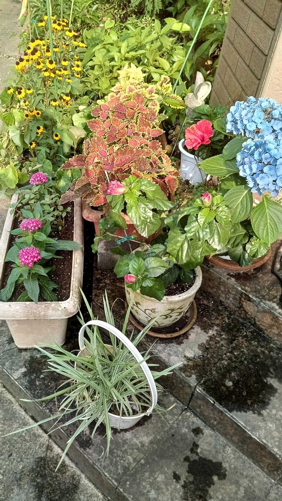 ルドベキア、ペンタス、コリウス、ハイビスカス🌺紫陽花、葉(?)