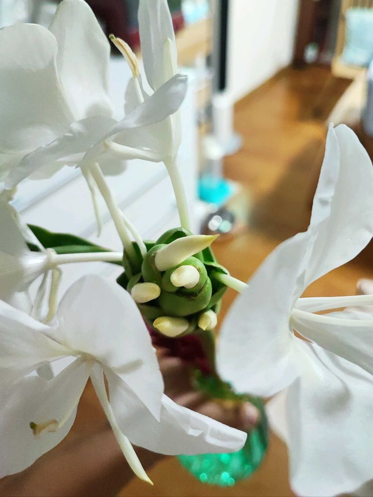 ハナシュクシャ(ジンジャーリリー)こうやって次の花がスタンバイしてるんです。
