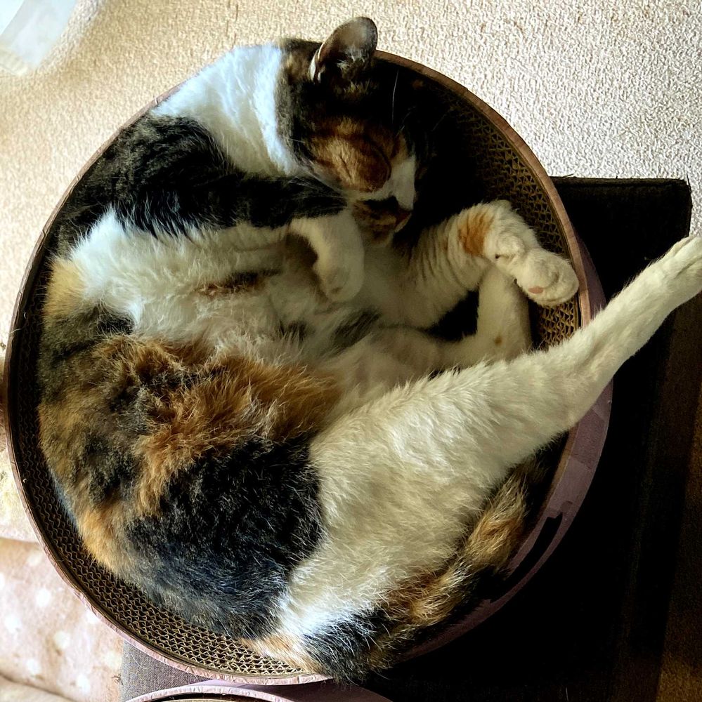 爪研ぎにもなっているこの猫壱のバリバリボウルが大好きで夏場はここか本棚の上でグッスリです(^-ω-^)Zzz.. (^-ω-^)Zzz..