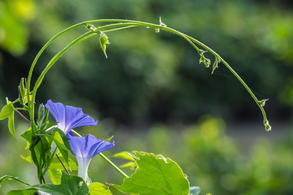 1枚目の朝顔の写真、ちょっと曲がったツルの感じもかわいい💕