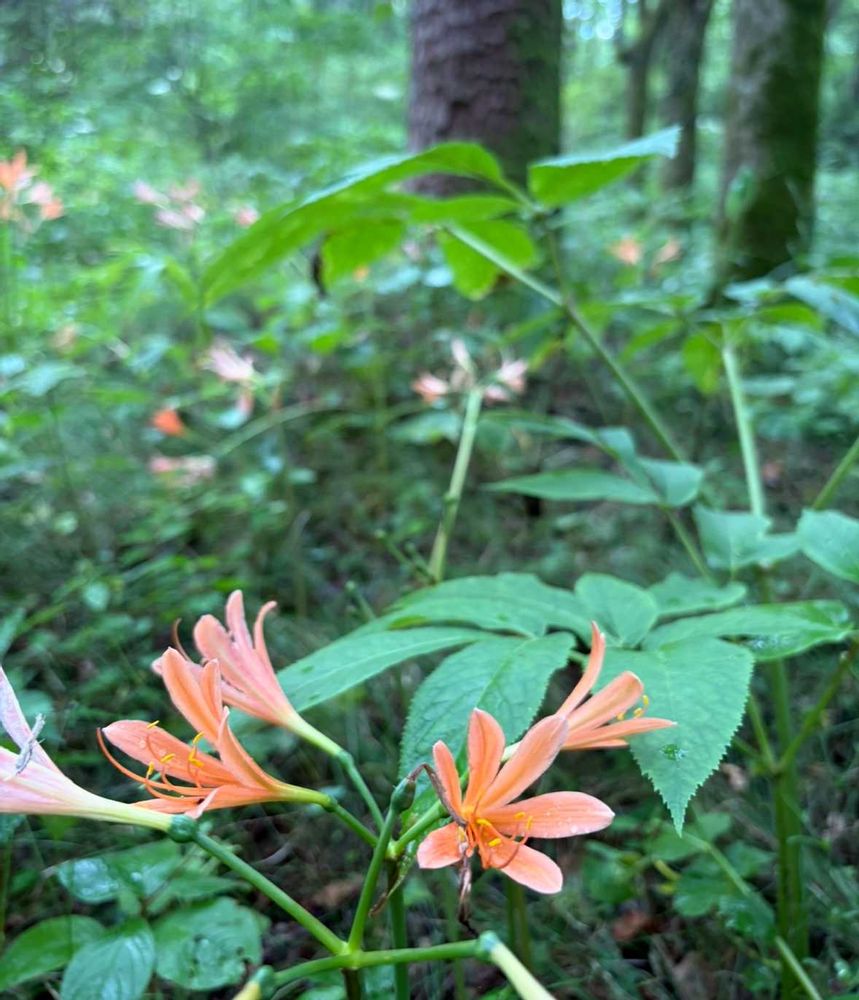 オレンジ色のお花、木々の間にひっそりと咲いていました🧡