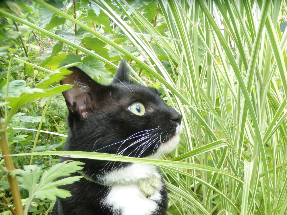 佐助🐈⬛は最近リードをつけてお庭をお散歩です🐾