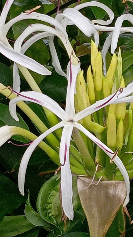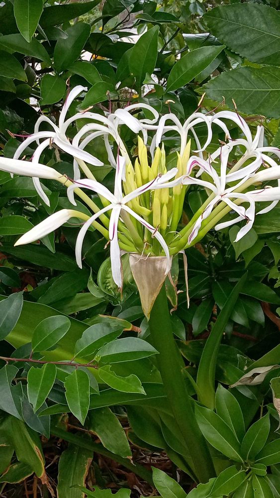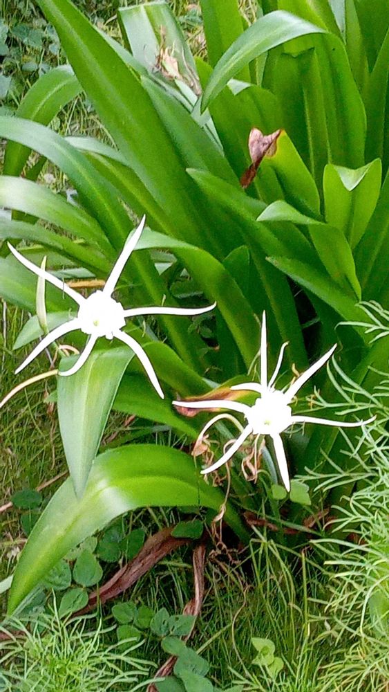③④⑤うちの庭のあちらこちらに咲く白い花を、勝手にハマユウだと信じ込んでいた私。2つ見比べて見たことがなかったので、葉の雰囲気と細長い花弁の形からつい最近まで、これがハマユウだと思っていた。ある方の投稿にコメントしたところ、お返事を見てあれ変だな?と感じよく調べてみたら、これはスパイダーリリーだったと判明😅