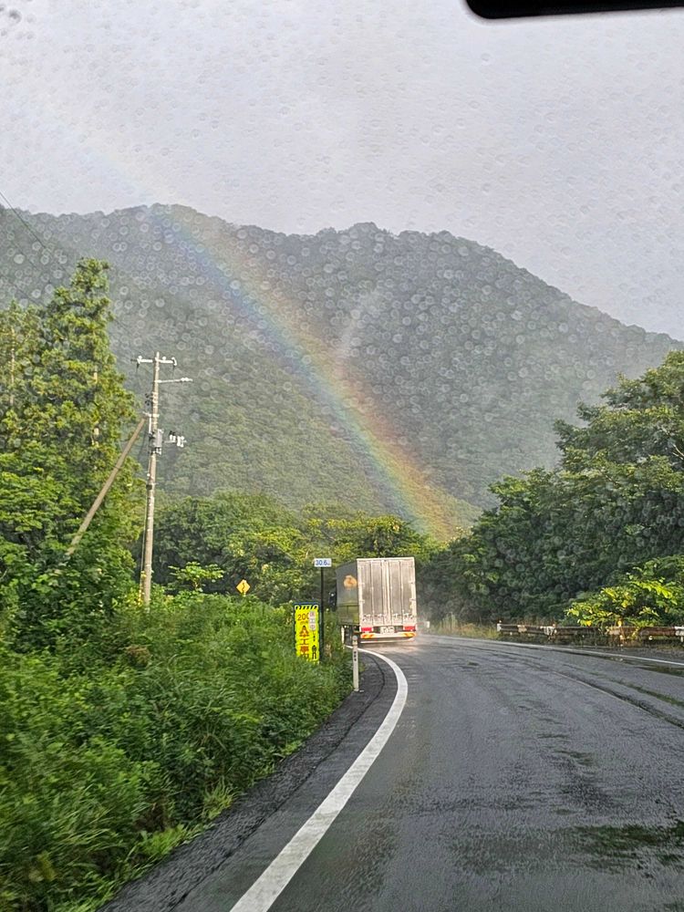 峠を走っていたら、突然目の前に虹🌈が現れました
