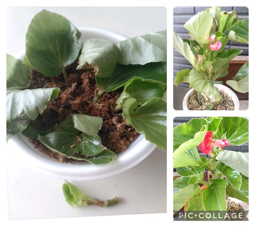 ベゴニアシエルモニター報告です。13日経過。お花は変わっていませんが葉挿しと、芽を挿し芽しています。芽からわずかに根が。これが楽しみです