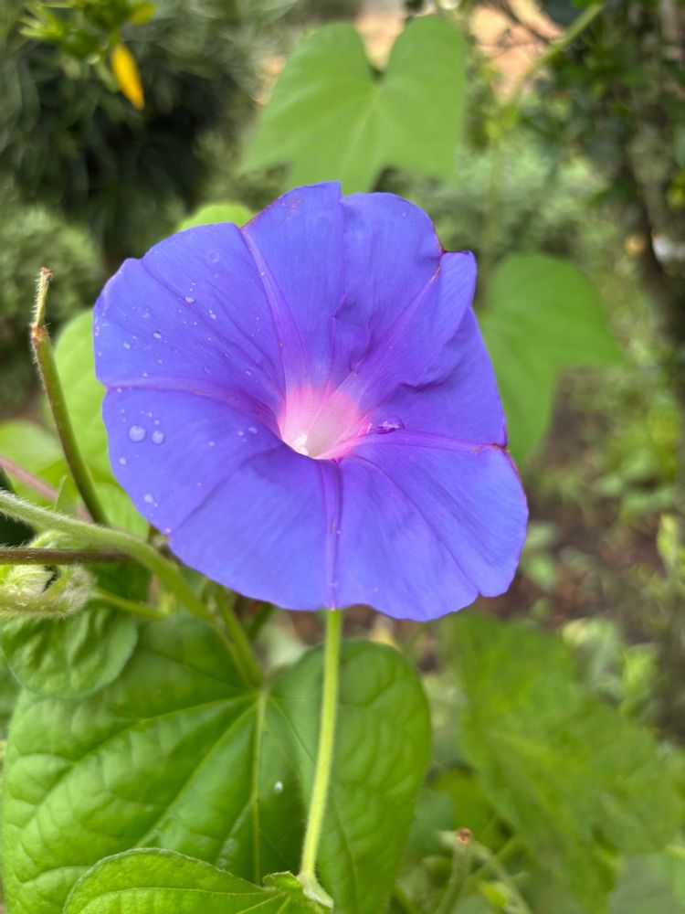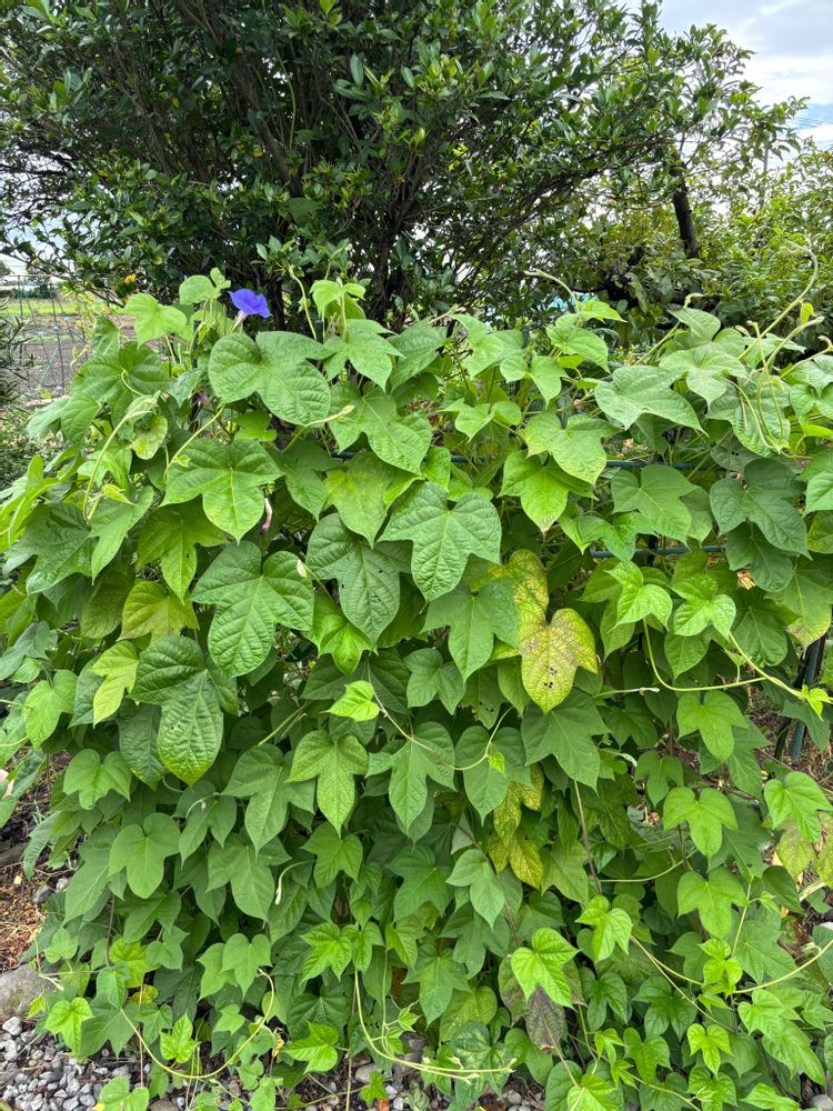 我が家の裏庭の琉球朝顔さんです。いつもあちこち伸びていって近くの木に絡まって後が大変なので今年はなるべく気をつけて✂️カットしました〜🤔そしたら花数が少な〜い😣💦💦けどまぁいいかのちゃ〜ちゃんでした😅😅😅