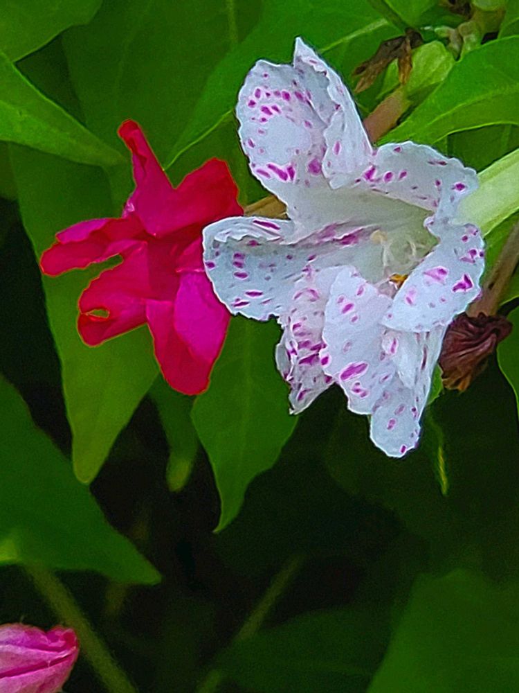 今日は、今週の暑いお散歩で出逢った、頑張って💪綺麗に咲いているオシロイバナ5枚を投稿しますね😁