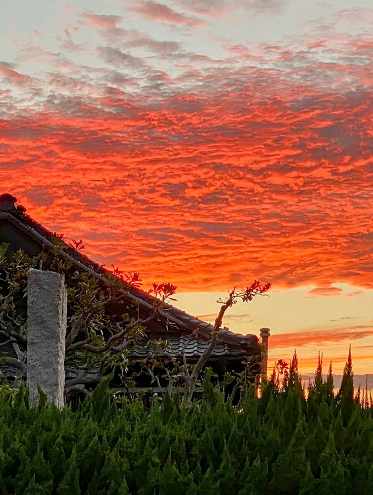 またまた素敵な夕焼けですねー。夕方の陽の光で雲が焼けたような夕焼けですねー