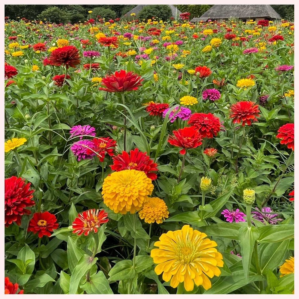 お盆前なら🌻も見れたようですがジニアが満開〜カラフルに咲いてキレイでしたよ😍♬