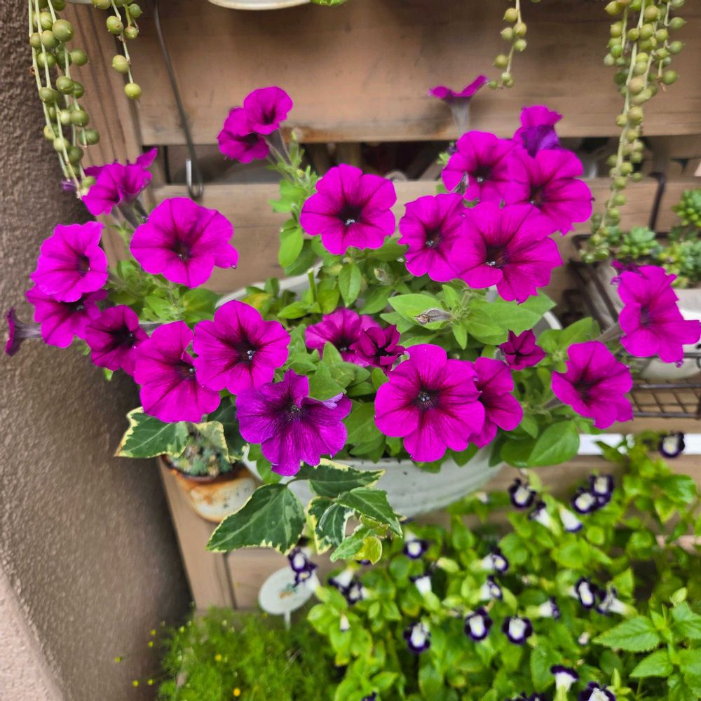 ペチュニアは育てるの下手だけど、見ると欲しくなる😆切り戻して何度目かの開花だけど、技量なく、これが精一杯😔