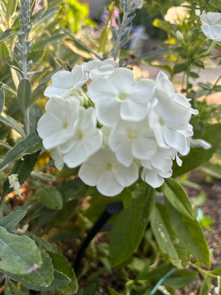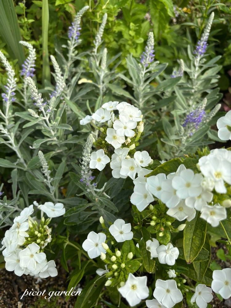 ホワイトのフロックスと紫のトウテイランとのコラボも素敵な組み合わせですね。