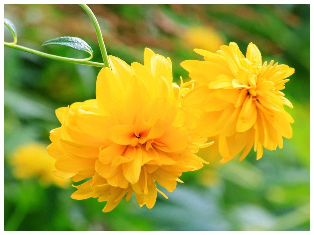 一重のオオハンゴンソウの花とは比べものにならないくらい、八重咲きはボリューム満点のビタミンカラーでした