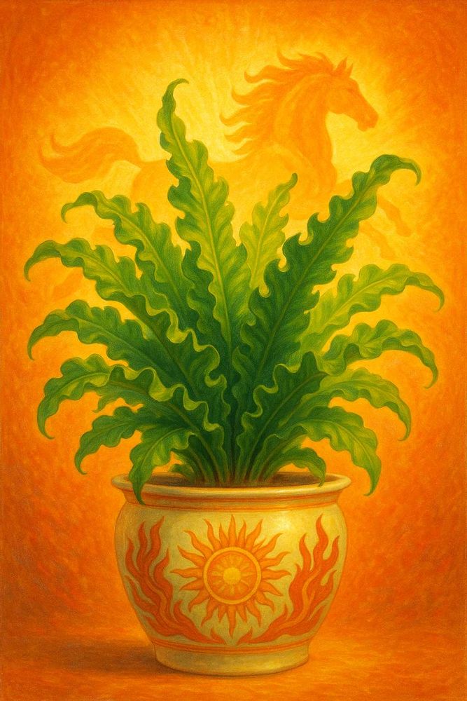 #観葉植物 #アスプレニウム #ユニコーン #シダ植物 #干支と植物 #植物アート #生成AI #開運植物 #苔草花 #360plants #運気アップ