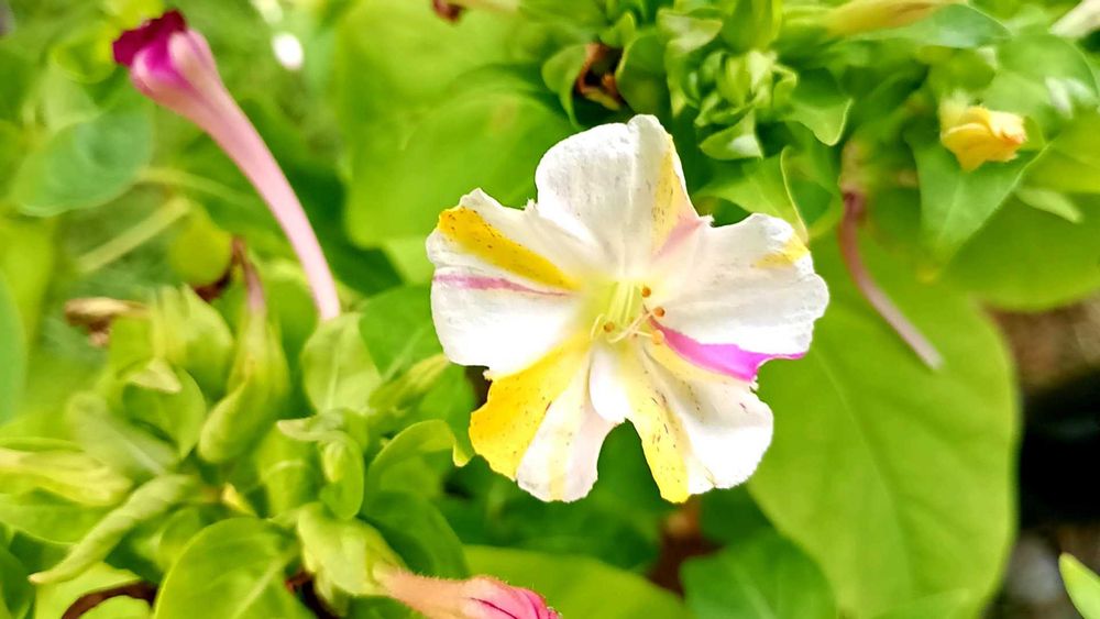 今朝、咲いていた唯一のオシロイバナ3色💛🤍♥️