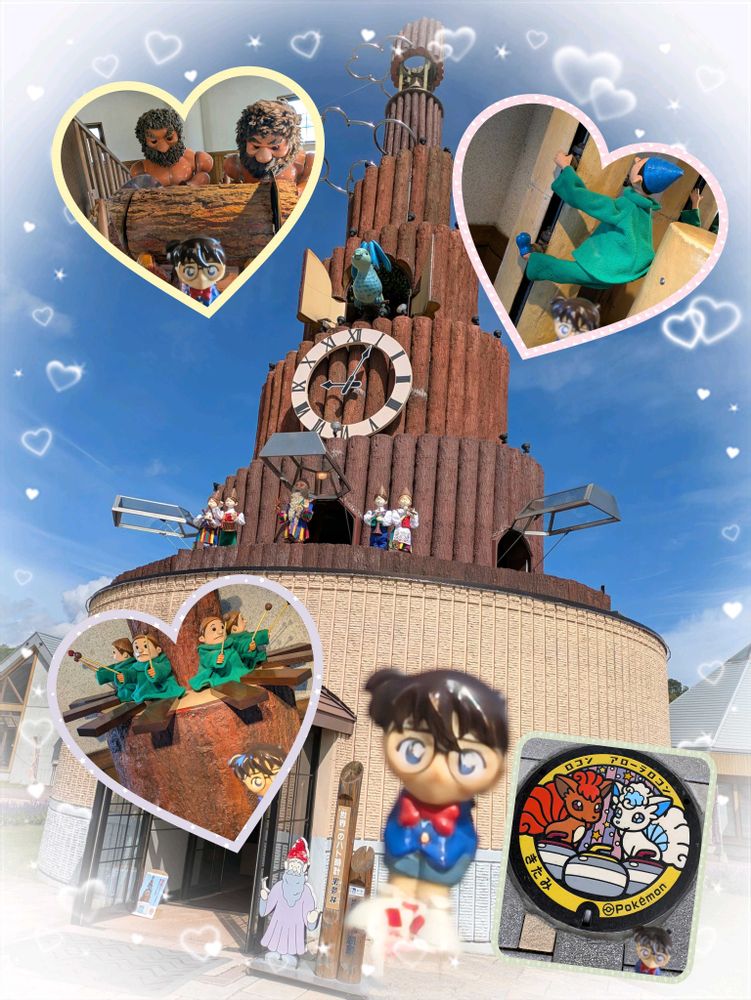 5枚目はからくり人形の建物で朝9時に鳩時計の鳩が出てきました♡道の駅にはポケモンマンホールもありました♪