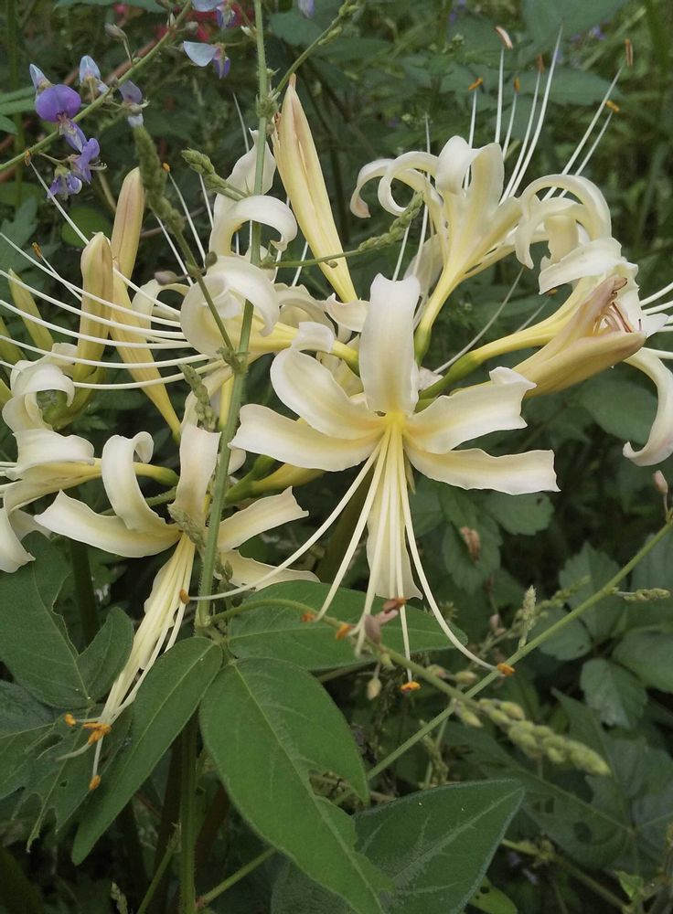 今日のお花「ハマユウ」は、ヒガンバナ科の多年草です。白い「ヒガンバナ」がよく似ていますね。😊