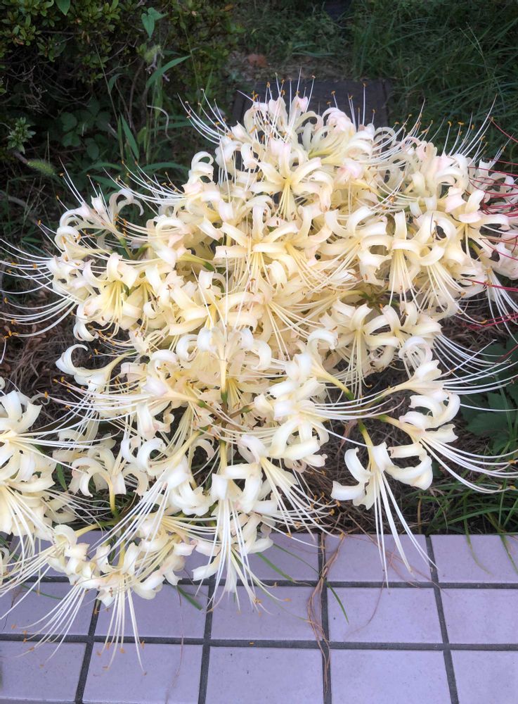 ヒガンバナはリコリスの一種で通常は赤色です。このpicは特殊な白色です。