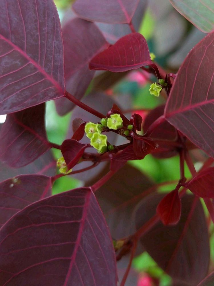 ①②③④ユーフォルビア・チョコリーフに黄色いお花が咲いていました〜😃🤗🎶🎵