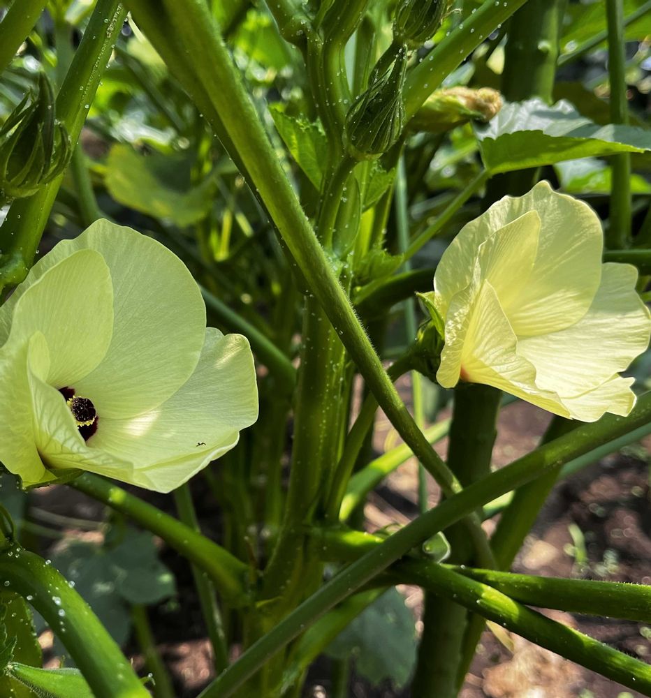オクラの花を見ると、ハイビスカスなんて要らないよね、と思ってしまう🤣