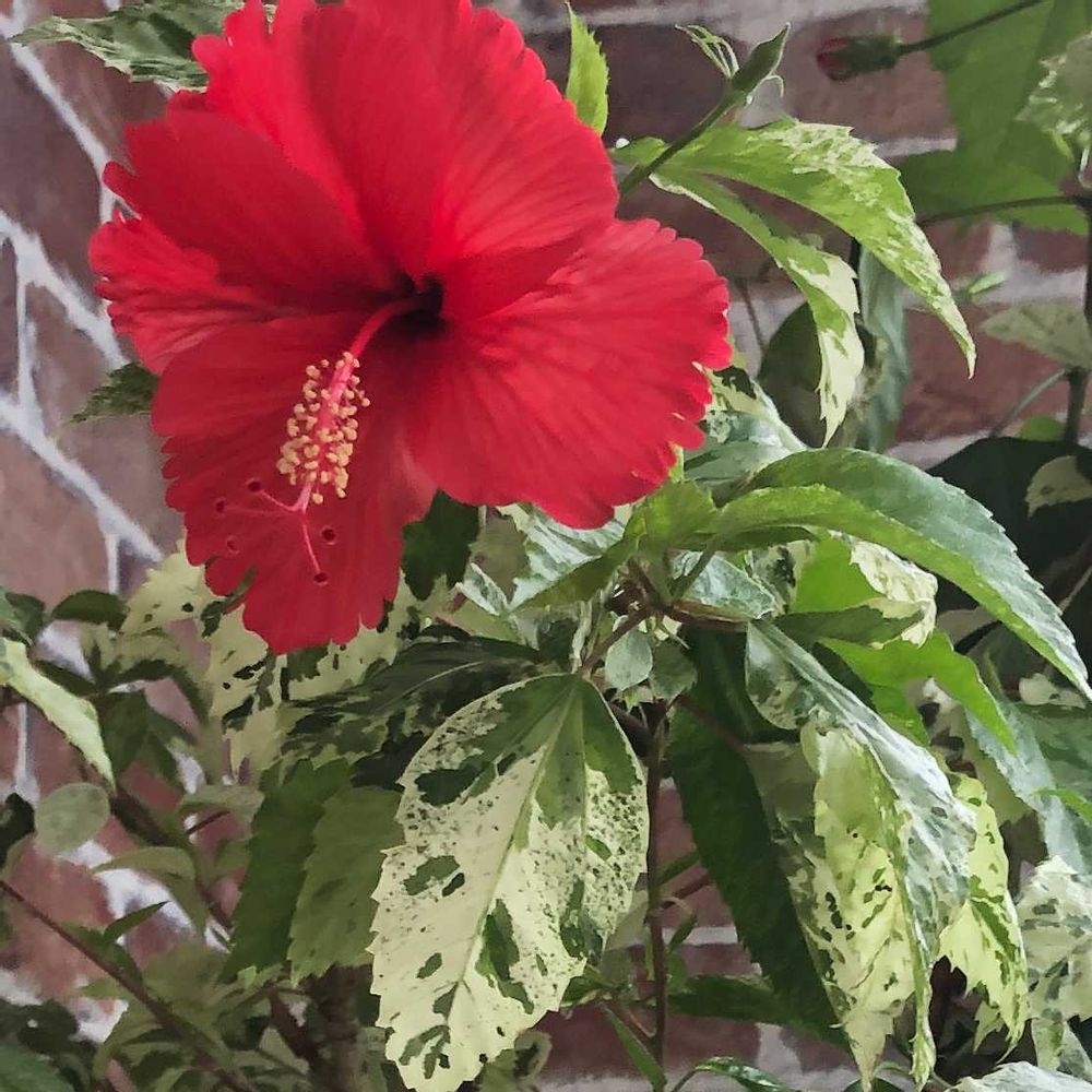 斑入りの葉っぱに、真っ赤なお花が映えますね😍