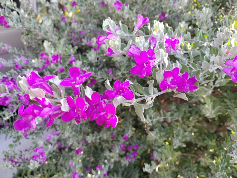 レウコフィルムはシルバーリーフに鮮やかな赤紫が、とても美しいです🌸🎶🎶