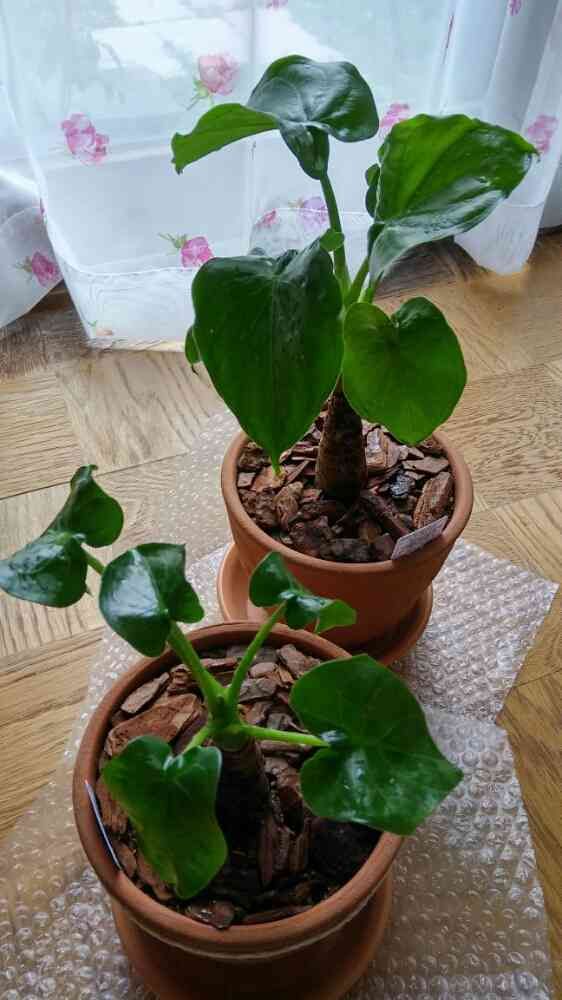 仲良しのクワズイモ(#^.^#)小さいのからまた新芽が( ^-^)ノ∠※。.:*:・'°☆本当に生命力凄いです。