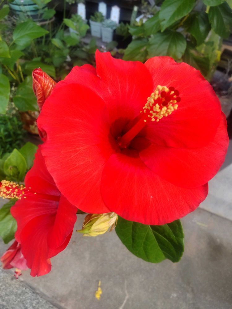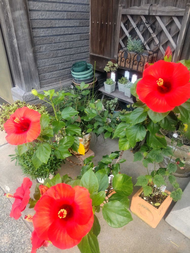 朝起きて庭パトしてたら赤いハイビスカスが5輪咲いてました