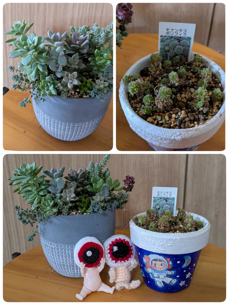 ①はなずきんさんのことからお迎えしたモナンテスポリフィラ。私にはまだまだ無理かな〜と思いつつ、せっかくのチャンスだからとお迎え〜夏越し心配で3箇所に分けて置いていたけどこのけいこさんのペコちゃん鉢だけなんとか残っているけど瀕死〜〜早く秋来て〜〜と願うしかない〜〜
