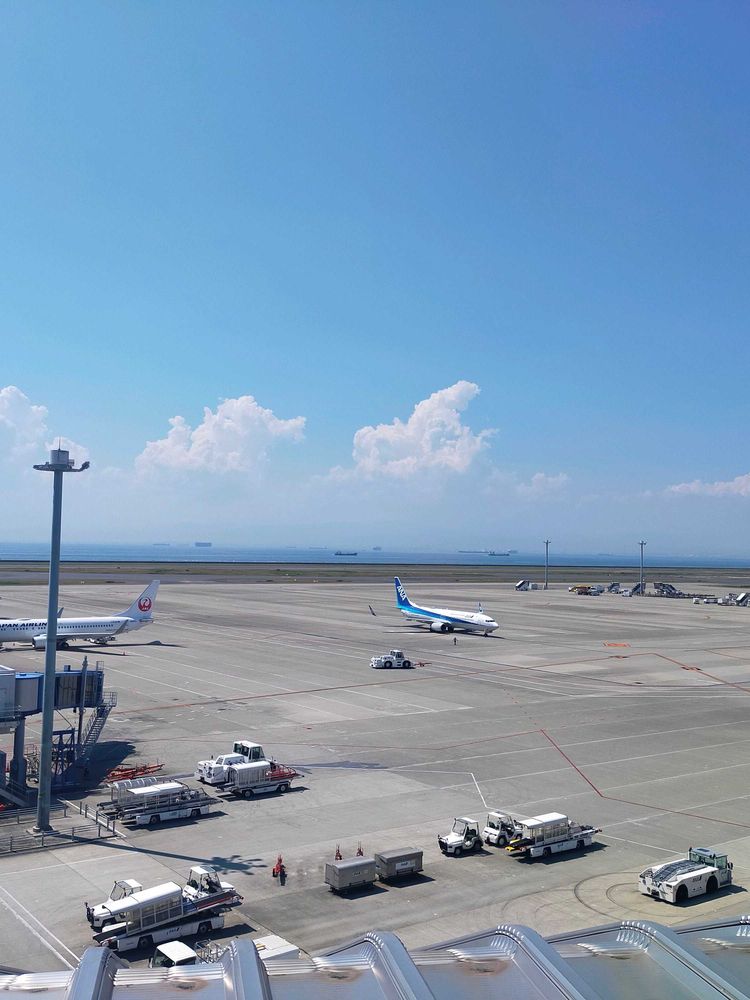 スカイデッキから飛行場を眺めていると 無性に旅行したくなりますね✈☁