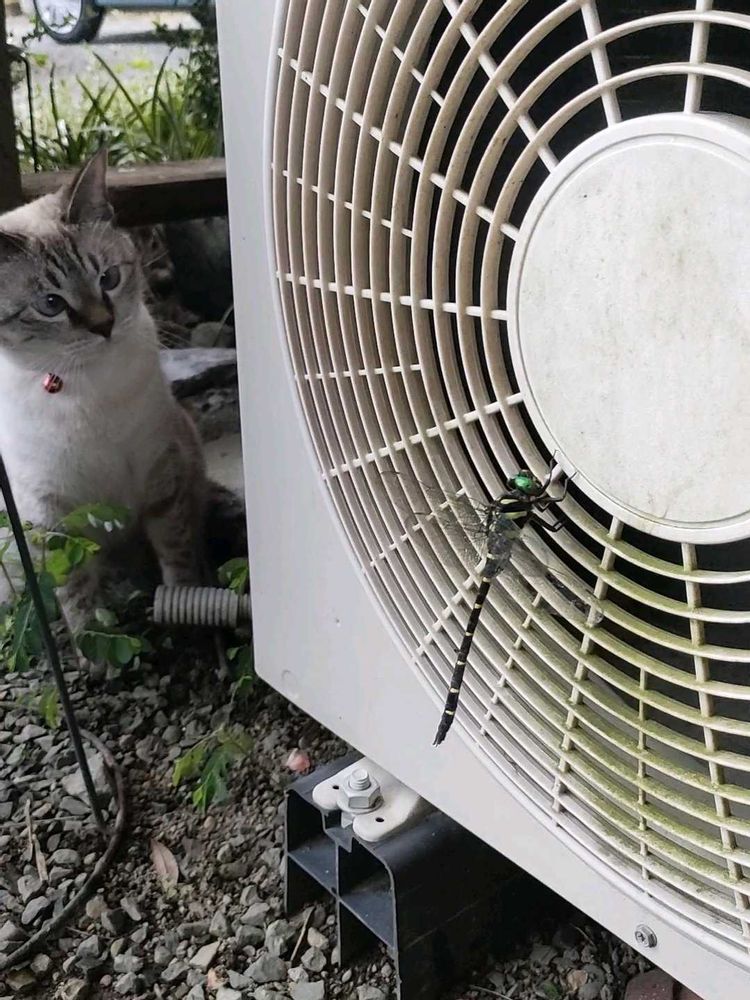 猫ちゃんとオニヤンマさん!とても可愛くてほっこり(*´-`)
