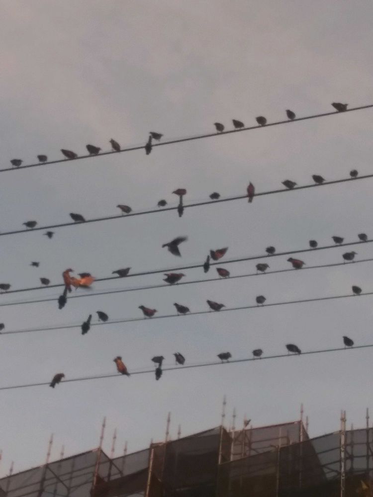 昔は雀の群れを見掛けたのに今やムクドリの大群による騒音及びフン害が住人の悩みですよね(場所によってはカラス)😓