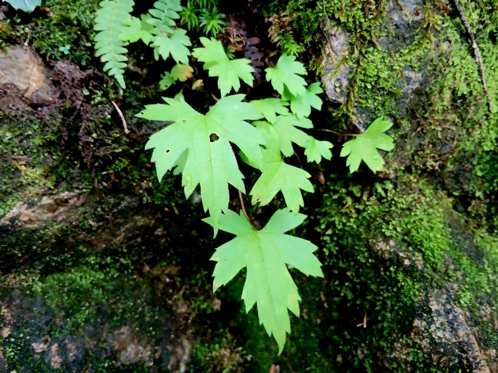 葉はヤツデの様に掌状に5から7裂し、鋸歯があります。葉は、タイミンガサやワタナベソウなどに似ていて、花はキッコウハグマなどに似ています。