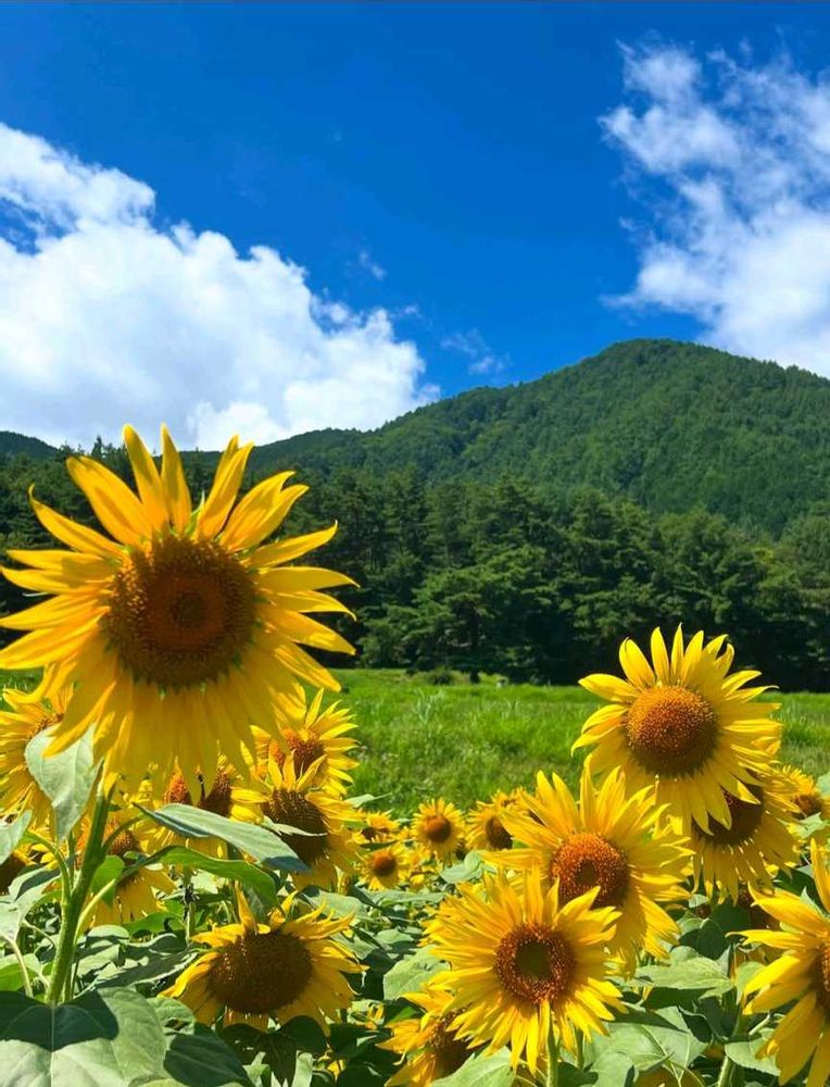 山と向日葵のコントラストがいい