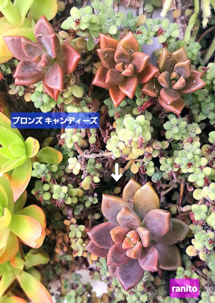 寄せ植えのブロンズ姫👸グラプトペタルム属 × セダム属なんだって📱ところで インスタ「ranito」って誰か分かりますか❓️ピンデガンバッテルナア😄