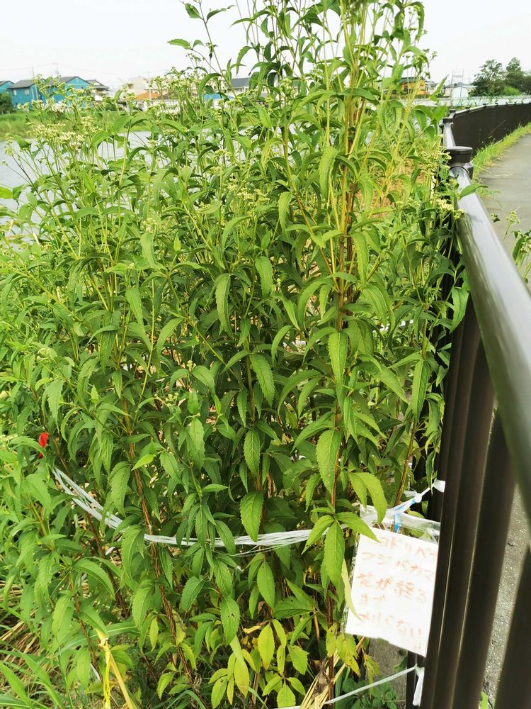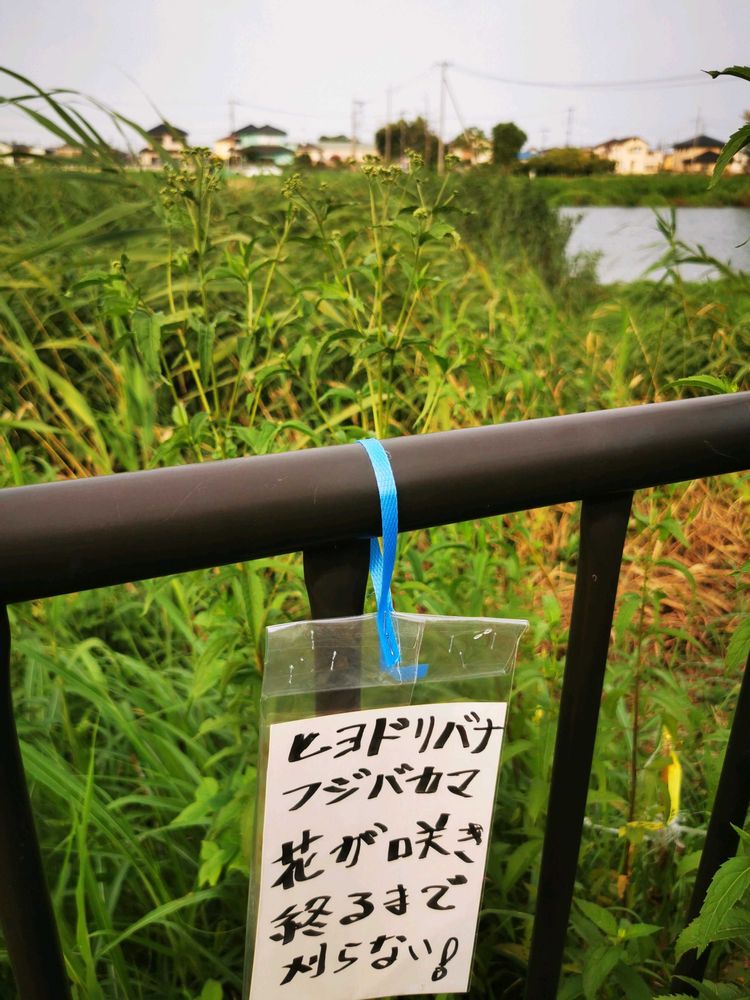 何かなと近づいて、読んだら、「ヒヨドリバナやフジバカマ。花が咲き終わるまで、刈り取らないでください。」ということでした。🌿