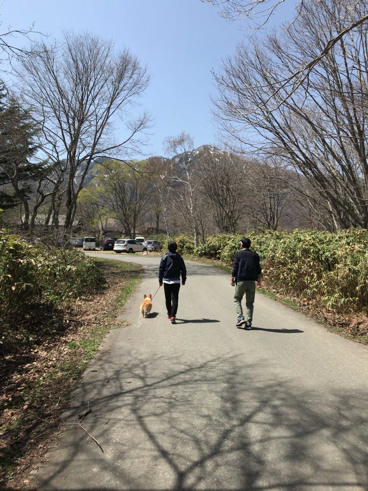 戸隠キャンプ場を散歩するランの後ろ姿で…