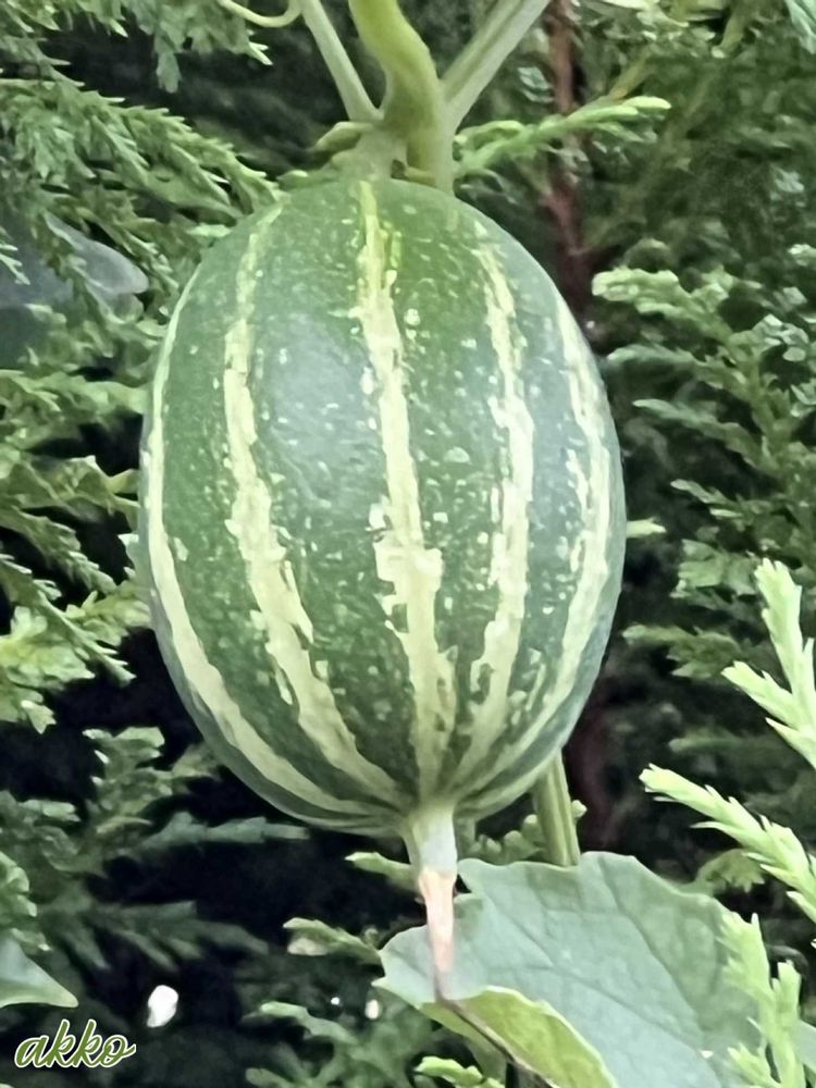 まだ緑のシマシマで、ふっくら長丸い感じです