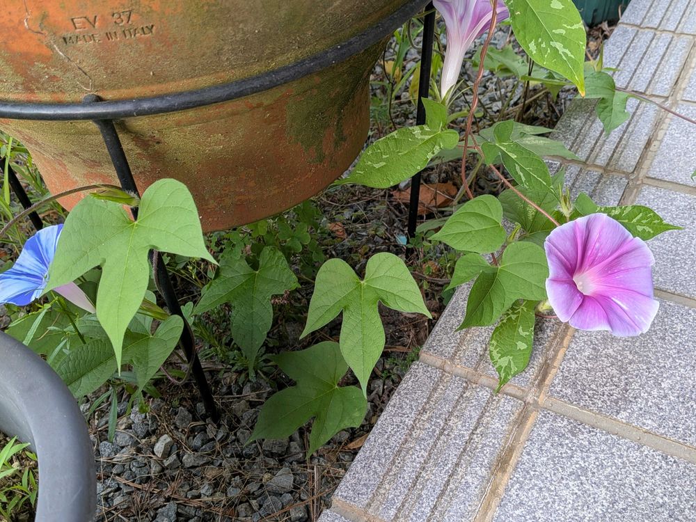 ピンクしか無かったうちの地植え朝顔なんですが、青が咲いたんです!おそらく同じ弦から咲いてるんだと思うのですが……こういうことってあるんですね!朝から感動しちゃいました😭