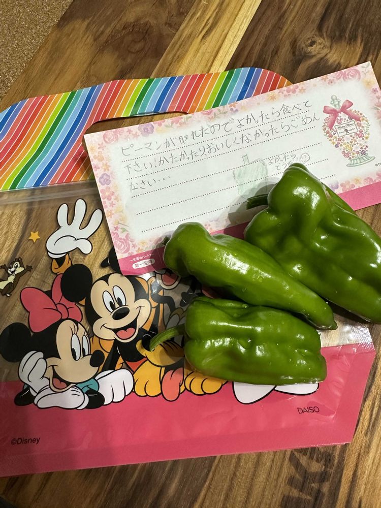 お母さんと一緒にプランターで育てているピーマンをお手紙付きでくれました💕(写真2枚目)
